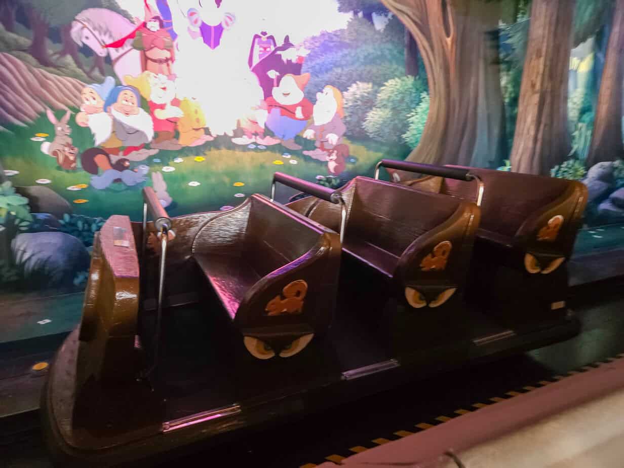 Each car has one orange seat designed for larger guests. It’s not clearly labelled, so it’s worth asking a Cast Member about it as you board.