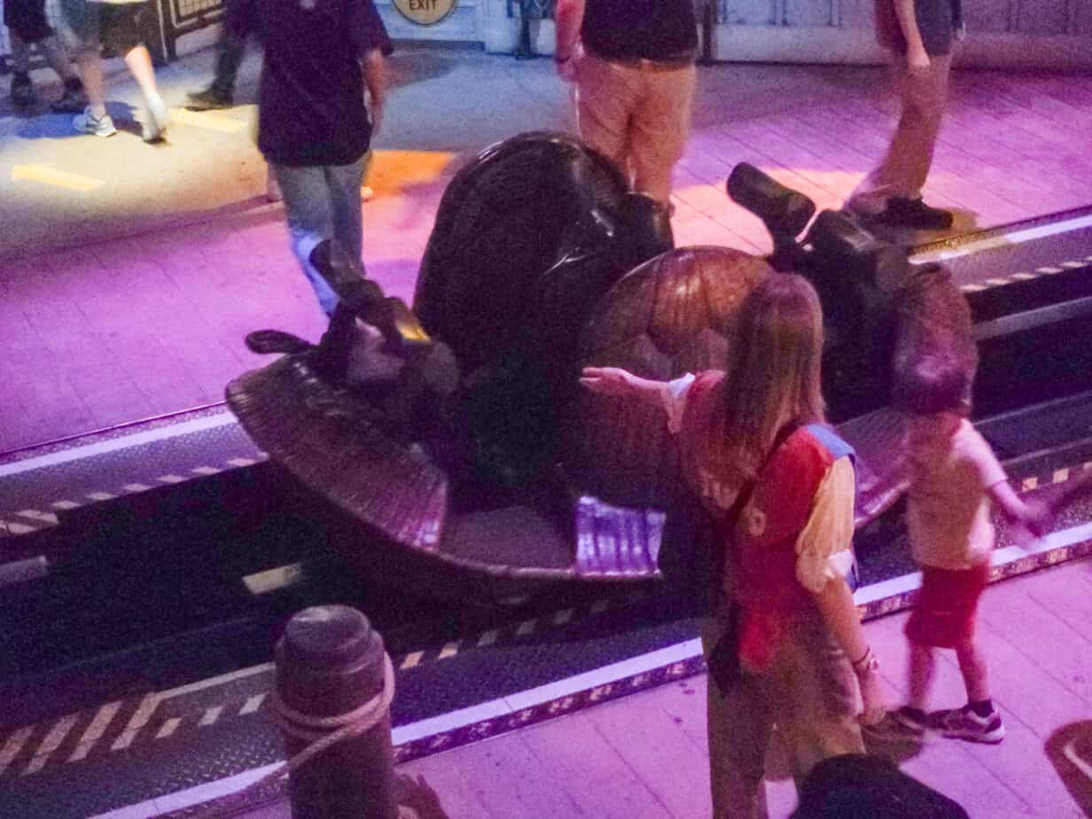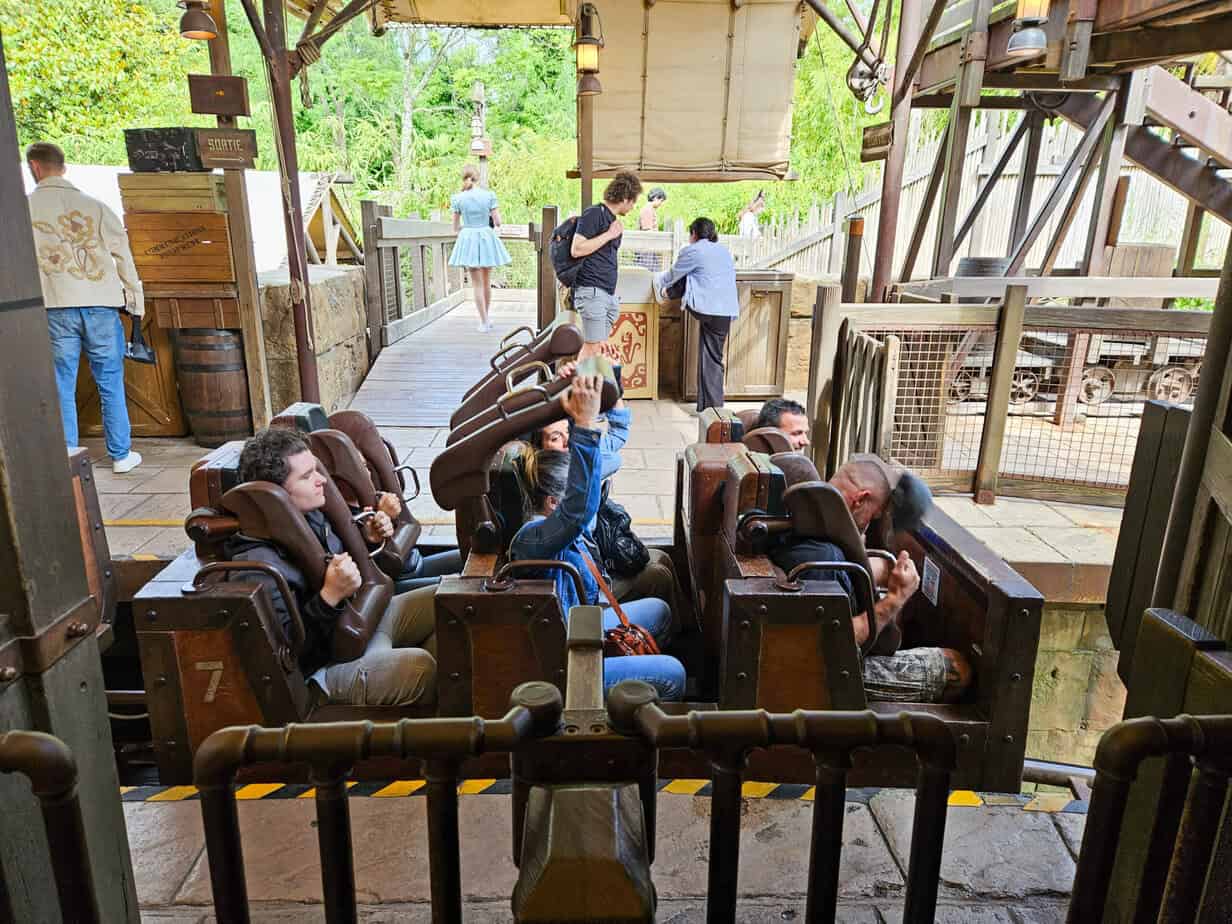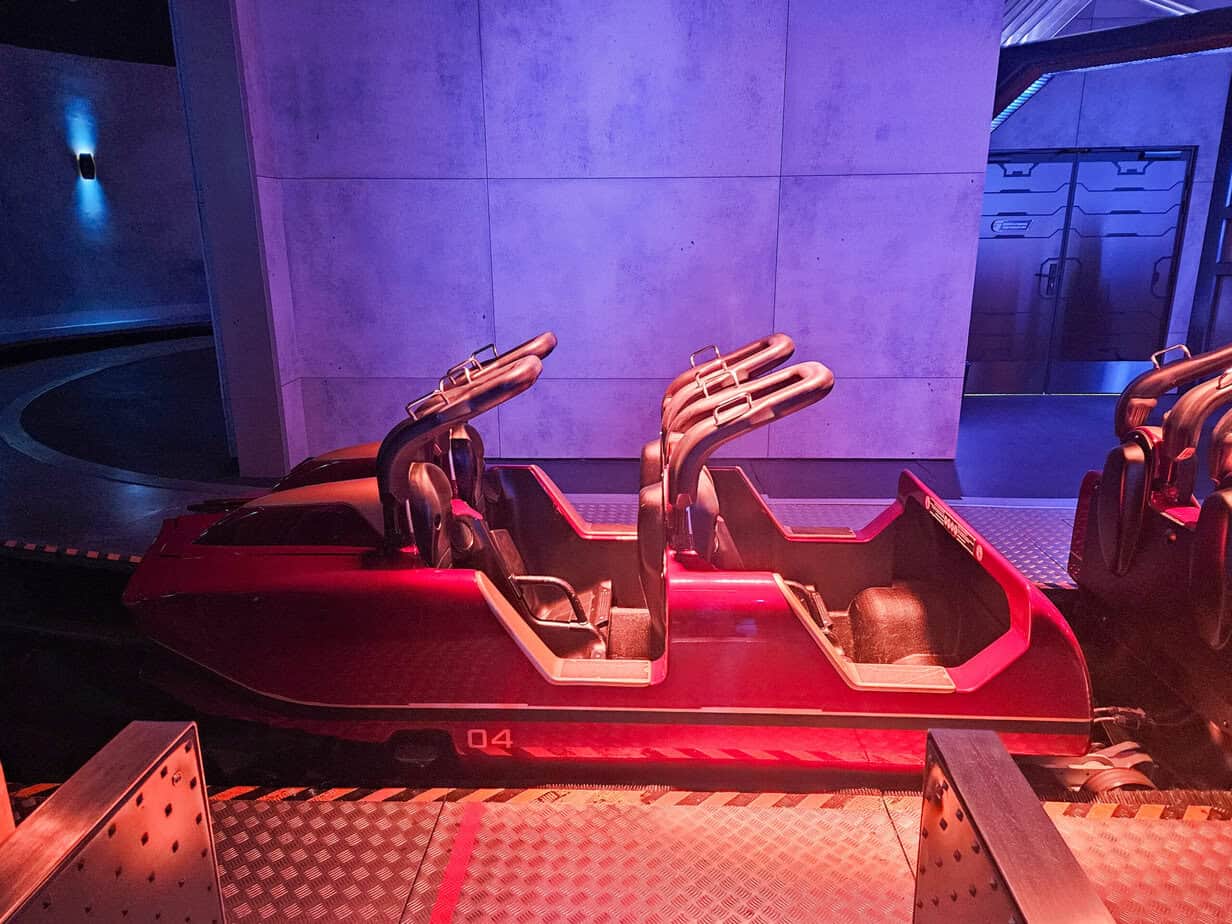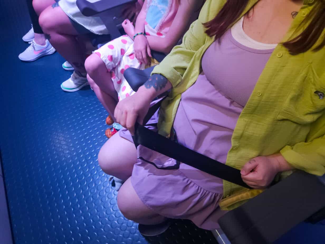 The ride loads on a moving platform (which isn’t ideal when you’re trying to wiggle into place), but you can always ask the Cast Member to stop it if you’re nervous. They’re super helpful and used to these kinds of requests.